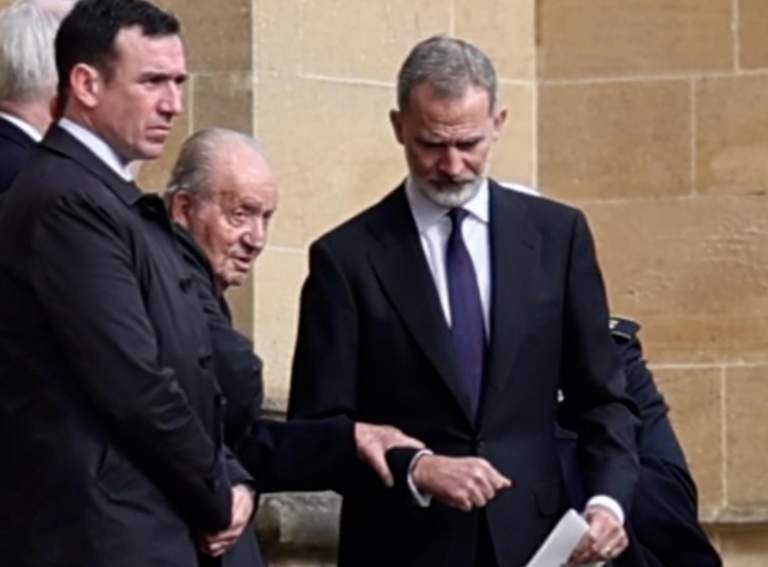 En las imágenes captadas por las cámaras de Europa Press se ve como Don Juan Carlos se agarra al brazo de su hijo, que ya se encontraba en el exterior del edificio, y Don Felipe le ayuda a acercarse a un vehículo. Muy cerca se encuentran también Doña Letizia y Doña Sofía.