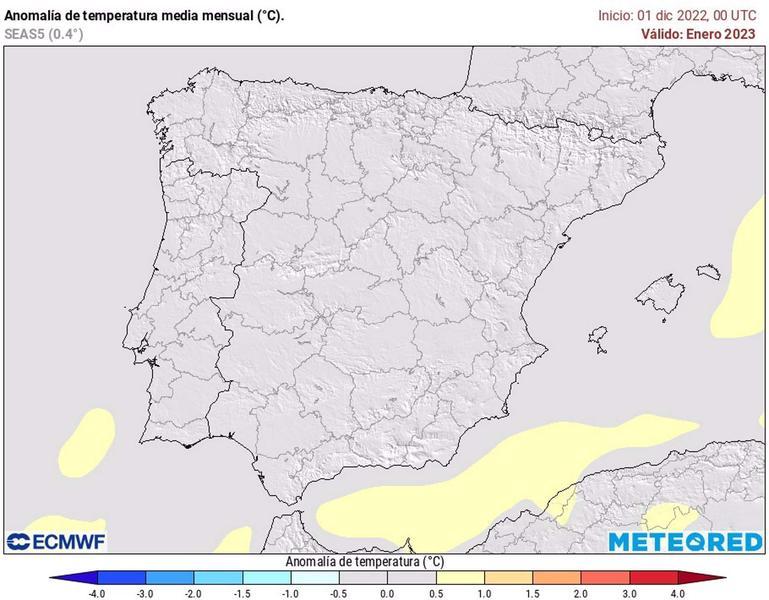 Previsión de la anomalía de las temperaturas para enero de 2023