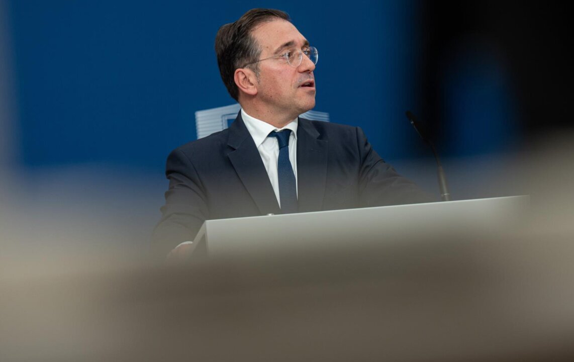 El ministro de Asuntos Exteriores, Unión Europea y Cooperación, José Manuel Albares, durante una rueda de prensa, en la sede de la Comisión Europea, a 11 de junio de 2025, en Bruselas (Bélgica).- Belga - Europa Press