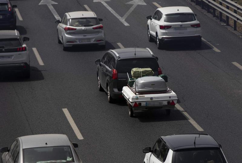 Varios vehículos circulan por la autovía A-49 sentido a Huelva el primer día de la tercera operación salida del verano de 2022