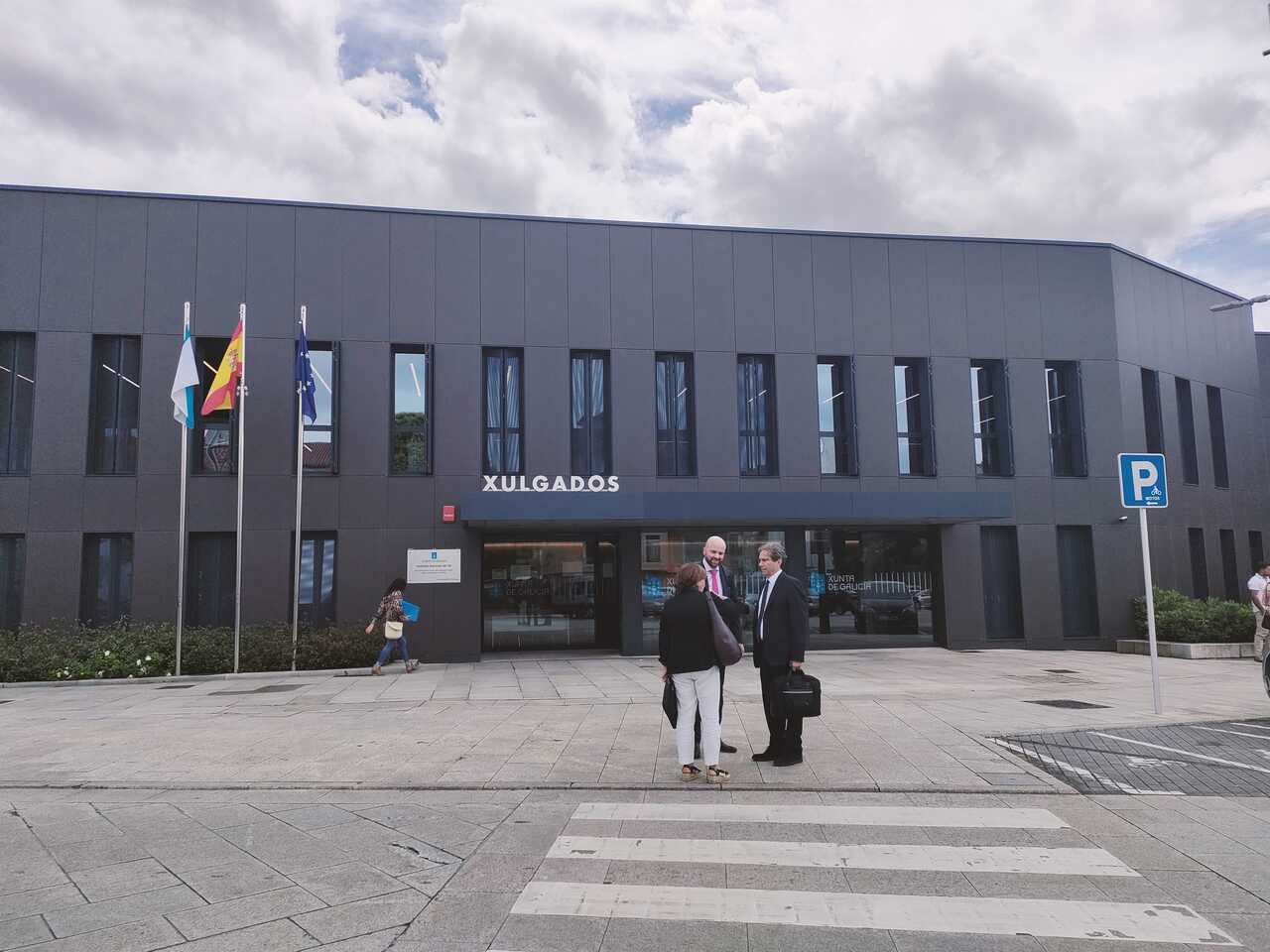 Archivo - Los abogados de la familia de Déborah Fernández Cervera y de Pablo P.S.L, único investigado por su desaparición y muerte, a las puertas del juzgado de Tui (Pontevedra), que instruyó la causa y acordó el archivo.