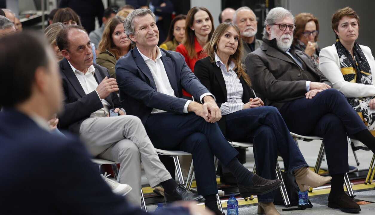 El presidente de la Diputación Provincial de Soria, Benito Serrano (i), el presidente del PP, Alberto Núñez Feijóo (2i), la consejera de Educación de la Junta de Castilla y León, Rocío Lucas- Concha Ortega Oroz - Europa Press