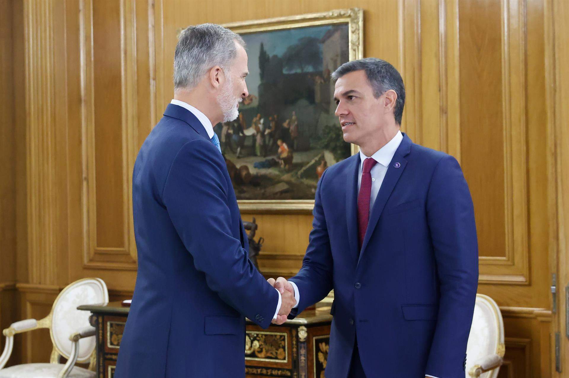 El Rey retomará los contactos a las diez de la mañana del martes con el presidente del Gobierno y secretario general del PSOE, Pedro Sánchez, que en la primera ronda de consultas ya se mostró dispuesto a someterse al debate de investidura.