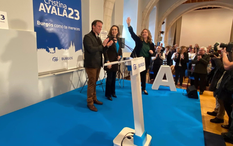 De la candidata al Ayuntmaiento de Burgos, Cristina Ayala, ha asegurado que se convertirá en la primera alcaldesa de Burgos, recuperando así el la Alcaldía perdida en 2019. "Hará historia. Ha demostrado que tiene a Burgos en la cabeza, pero además lo tiene en el corazón", ha añadido.