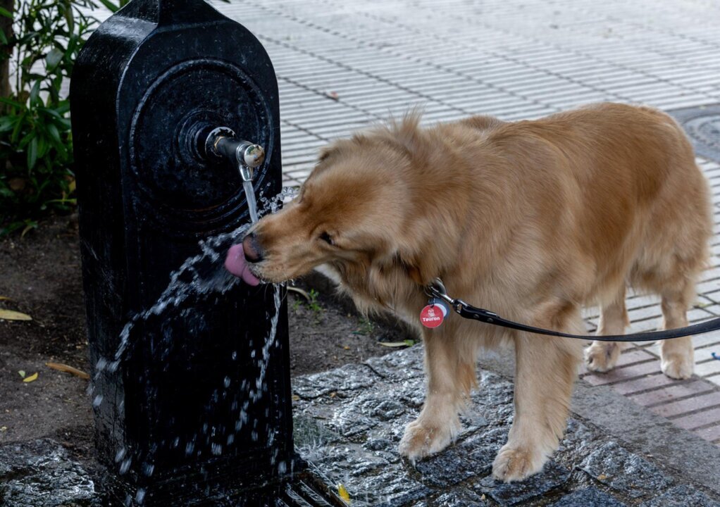 Un perro bebe agua de una fuente- Ricardo Rubio - Europa Press
