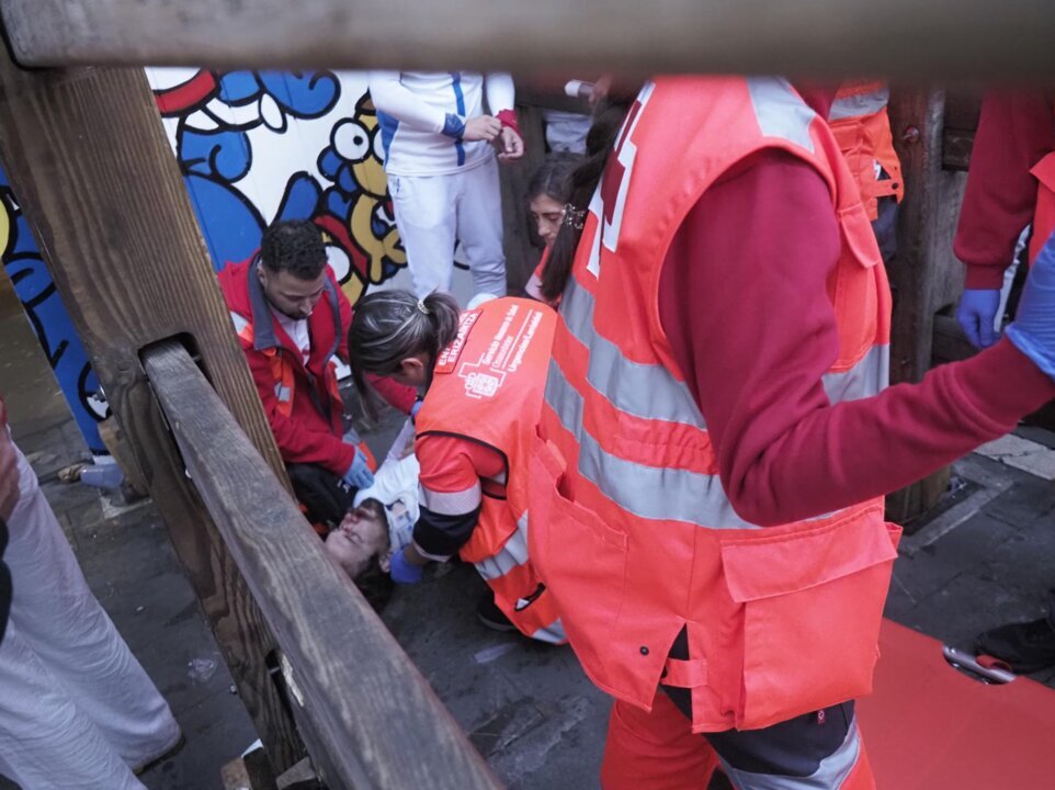 Dos de los traslados han llegado desde la Plaza del Ayuntamiento por policontusiones; otros dos desde Espoz y Mina, uno con contusión en el hombro y el otro con herida por asta en la axila derecha, que "está en valoración y se encuentra estable", según las informaciones desde el HUN.