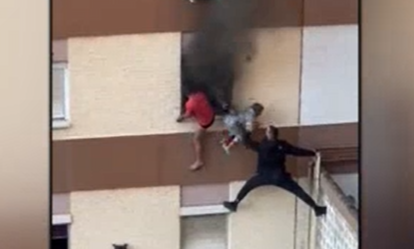 Tras salvar a los dos hermanos, de 2 y 6 años, el padre se arrojó por la ventana. Los vecinos habían colocado colchones anteriormente para que cayera sobre ellos y amortiguar el golpe. Pero toda ayuda siempre es poca, al caer, rebotó e impactó contra el suelo con la mala suerte de fracturarse ambas piernas.