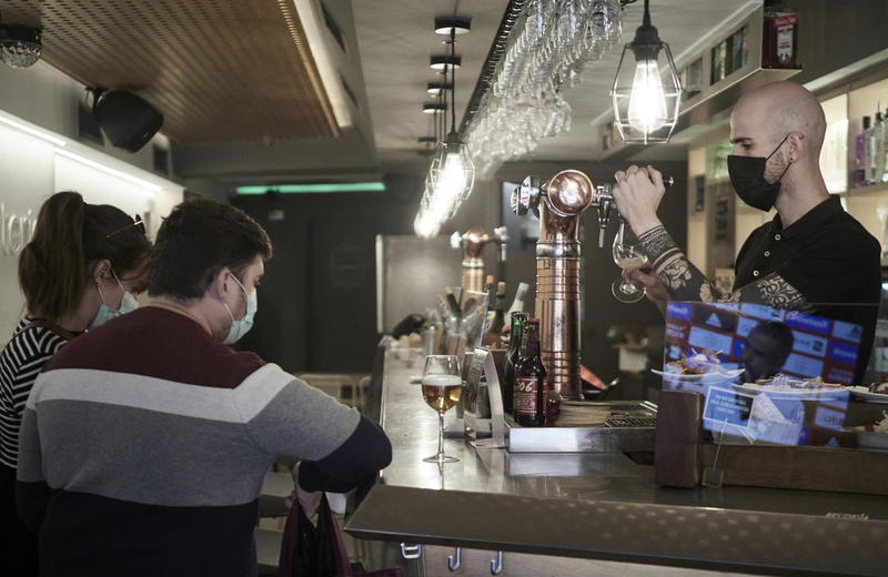 Un camarero sirve una cerveza en el interior de un bar, a 1 de octubre de 2021, en Pamplona, Navarra (España). - Eduardo Sanz - Europa Press