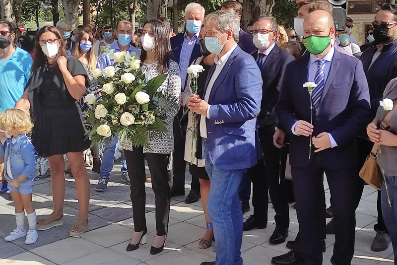 Arrimadas ha asistido este sábado, 18 de septiembre, al homenaje y ofrenda floral organizados en Zaragoza por la Asociación de Víctimas del Terrorismo (AVT) en protesta por los actos en apoyo al etarra Henri Parot, cuyo rastro de terror incluye atentados como el de la casa cuartel de Zaragoza, en 1987, que dejó once muertos, incluidos seis niños.