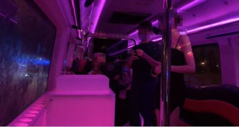Interceptan en Málaga un autobús convertido en una discoteca móvil que ofrecía fiesta sin medidas anticovid, el microbús tenía barra, luces y humo ambiente propio de una discoteca