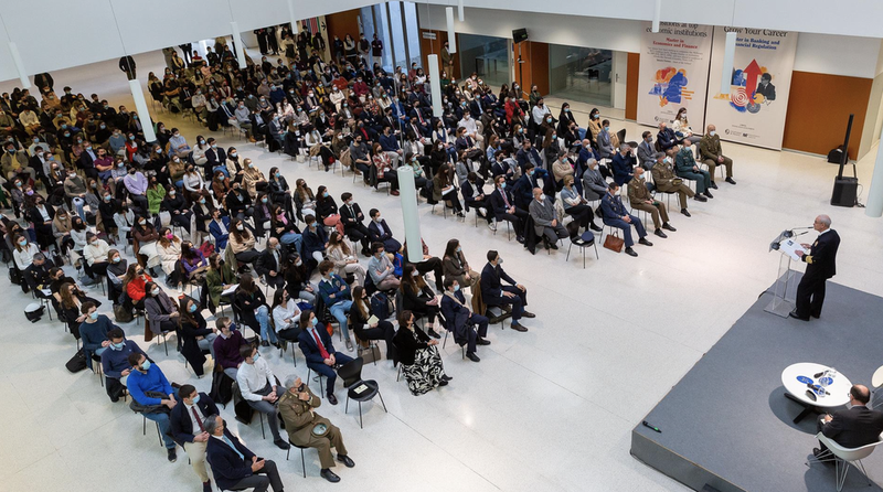 Teodoro López Calderón se refirió a la actual situación de inestabilidad en la fachada oriental de la Unión Europea, entre Rusia y Ucrania, y advirtió de la "creciente asertividad, en su acepción anglosajona", mostrada por la Federación rusa como uno de los principales riesgos en el ámbito geoestratégico actual. Riesgos que, según explicó, "surgen del intento de cambiar la estructura actual de las relaciones internacionales basadas en normas y la competición entre potencias que está conllevando ese objetivo".