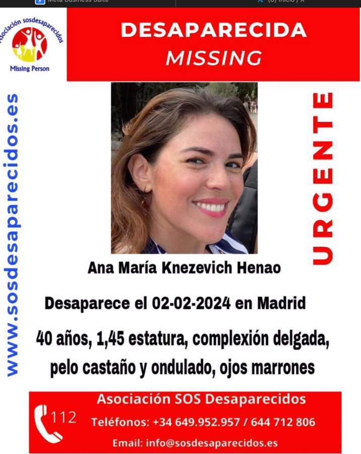 Ana María Henao, de 40 años y residente en Florida, despareció en la capital de España el pasado 2 de febrero por la noche, cuando sus allegados le perdieron el rastro.