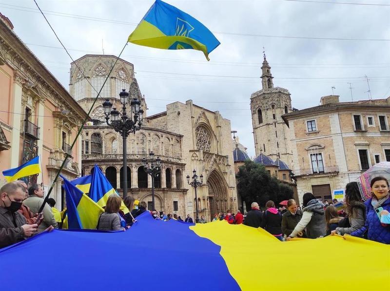 Una concentración celebrada este domingo en la plaza de la Virgen de València ha pedido el cierre del espacio aéreo ucraniano ante los ataques rusos. "Putin está aprovechando este hueco y bombardea civiles, casas y militares", ha denunciado el presidente de la Cámara de Comercio hispano-ucraniana para el desarrollo, Mykhaylo Petrunyak.
