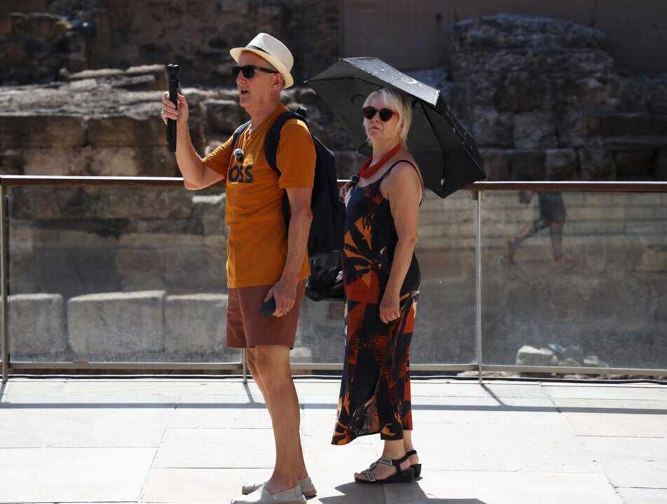 Archivo - Varias personas se protegen del sol en una calle (Andalucía, España).- Álex Zea - Europa Press - Archivo