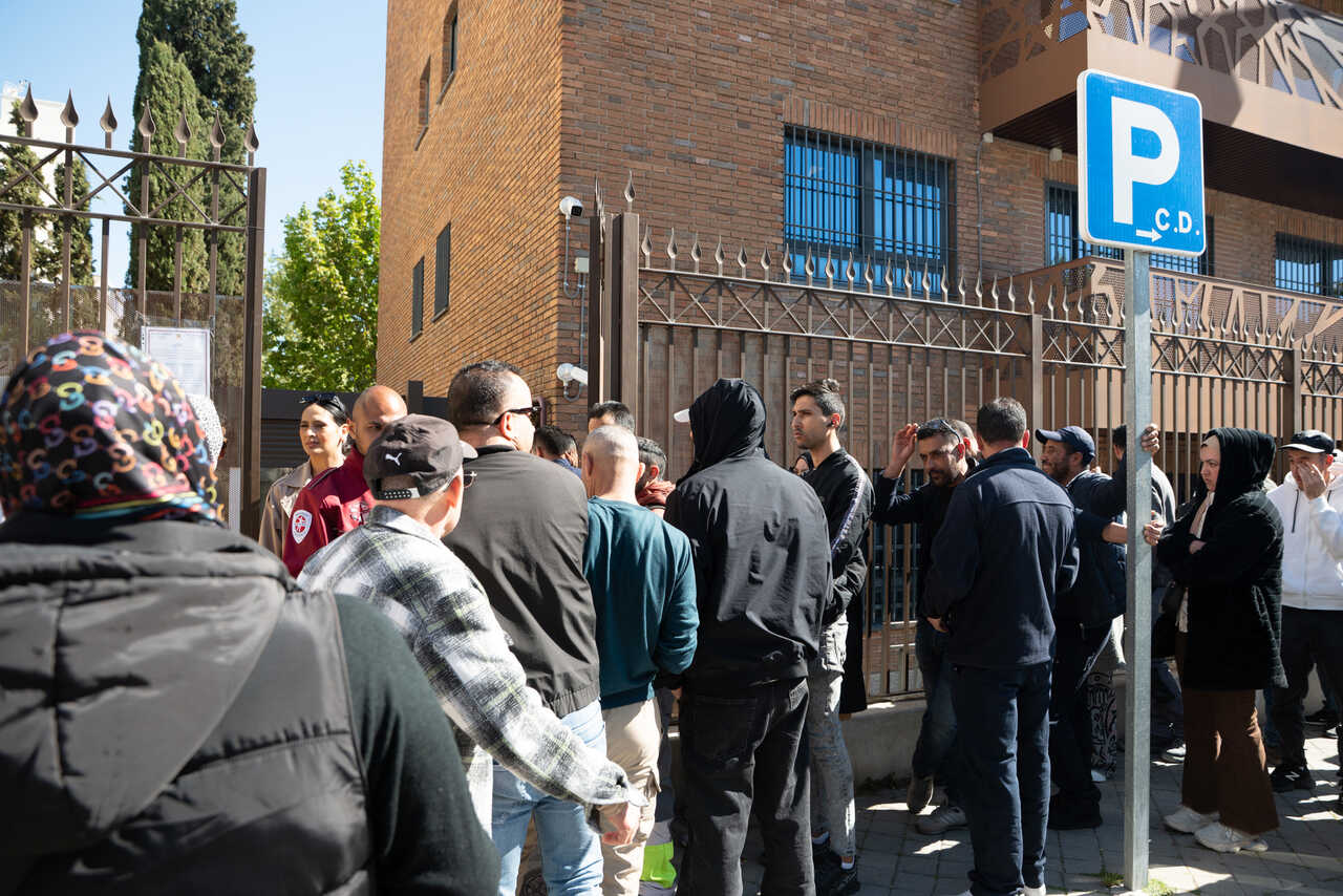 Varias personas hacen cola para entrar en la Embajada y Consulado de Marruecos, a 15 de abril de 2026, en Madrid (España).