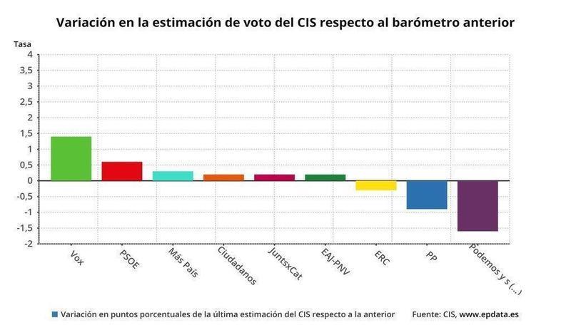 El nuevo Barómetro del CIS vuelve a situar al PSOE en cabeza, mientras que Podemos y PP caen y Vox sube con fuerza