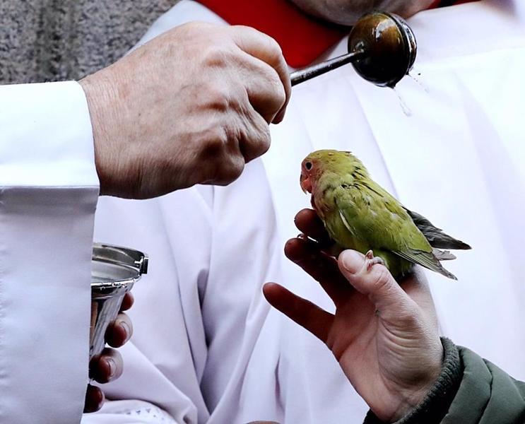 Bendición de animales en la Iglesia de San Antón en Madrid