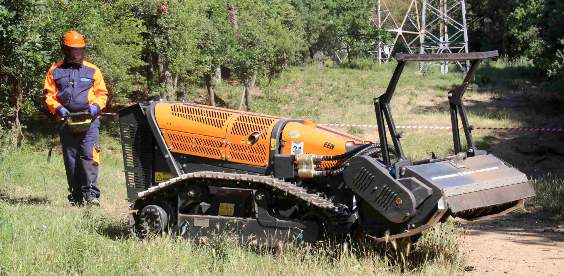 La creación de corredores debajo de las líneas eléctricas que actúan como cortafuegos naturales es una tarea esencial a la que se incorporan cada año nuevos elementos como una máquina desbrozadora teledirigida que mejora las condiciones de seguridad y salud de las personas que ejecutan trabajos de tala y poda.