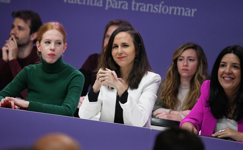 (I-D) La secretaria Organización de Podemos y secretaria de Estado de Agenda 2030, Lilith Verstrynge; la secretaria general de Podemos y ministra de Derechos Sociales y Agenda 2030, Ione Belarra; y la secretaria de Internacional y eurodiputada de Podemos, - Fernando Sánchez - Europa Press