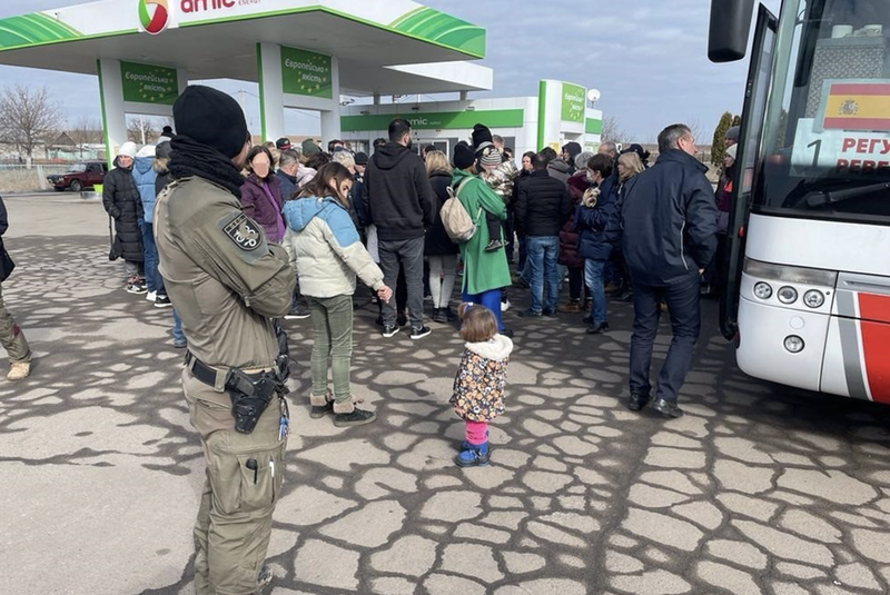 El primer convoy con españoles cruza la frontera y se encuentra "a salvo" en Polonia
