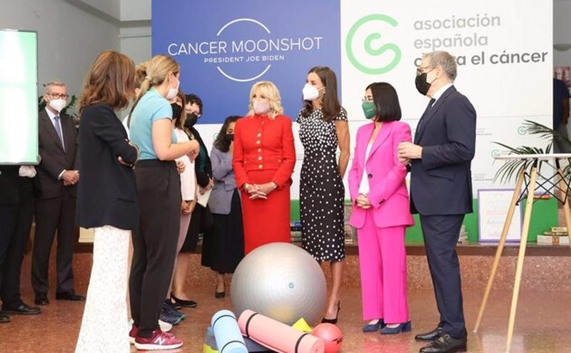 La primera dama de Estados Unidos, Jill Biden, ha estado acompañada de la reina Letizia en una visita a las instalaciones de la Asociación Española Contra el Cáncer en Madrid para conocer la labor transversal de la asociación nacional.