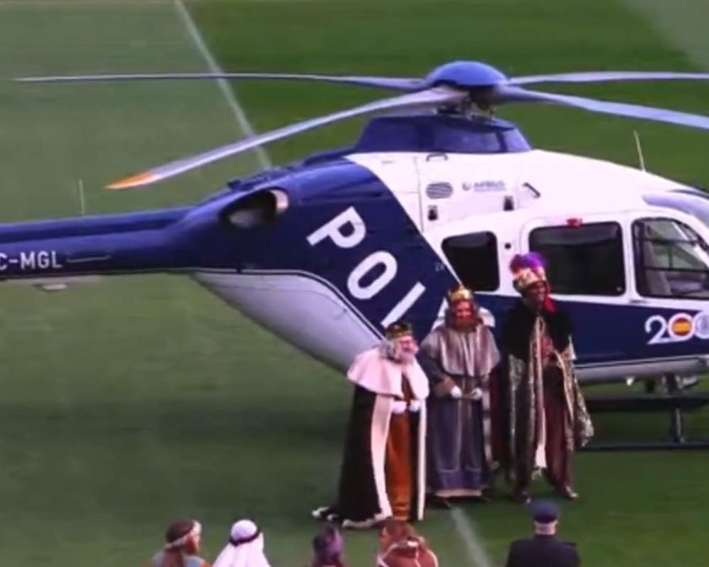La Romareda recibe la llegada de los Reyes Magos de Oriente en helicóptero