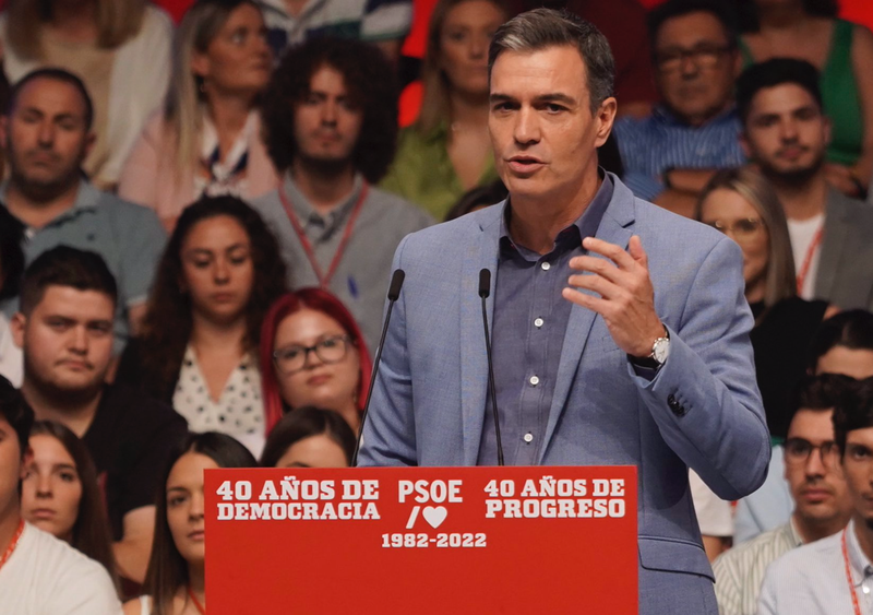 El presidente del gobierno, Pedro Sánchez, durante acto público organizado por el PSOE para conmemorar el 40 aniversario de la primera victoria electoral socialista en 1982 en FIBES, a 29 de octubre de 2022 en Sevilla (Andalucía, España). - Francisco J. Olmo