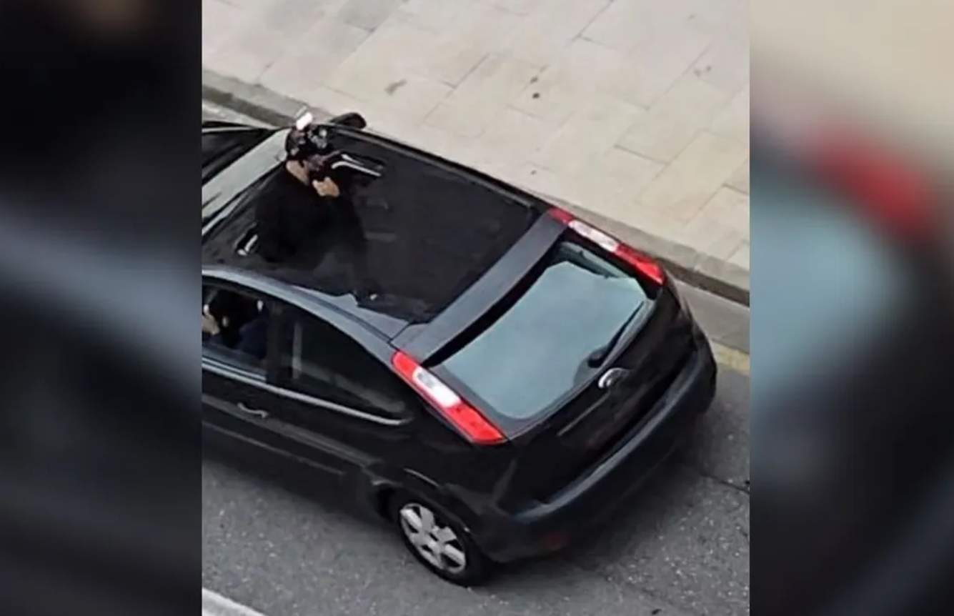 Lo hacían encabezado por un vehículo que circulaba a una velocidad anormalmente reducida, con un individuo con medio cuerpo fuera del automóvil a través del hueco del techo solar y posicionado casi sobre el cuerpo del conductor, portando una cámara de vídeo. Iban gran cantidad de turismos en lo que parecía ser el grupo de asistentes a una boda.