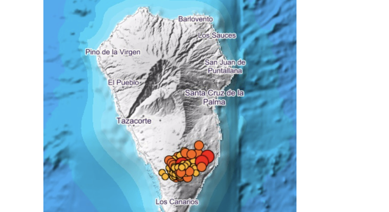 Mapa de los terremotos en La Palma durante los últimos tres días - CEDIDO POR IGN
