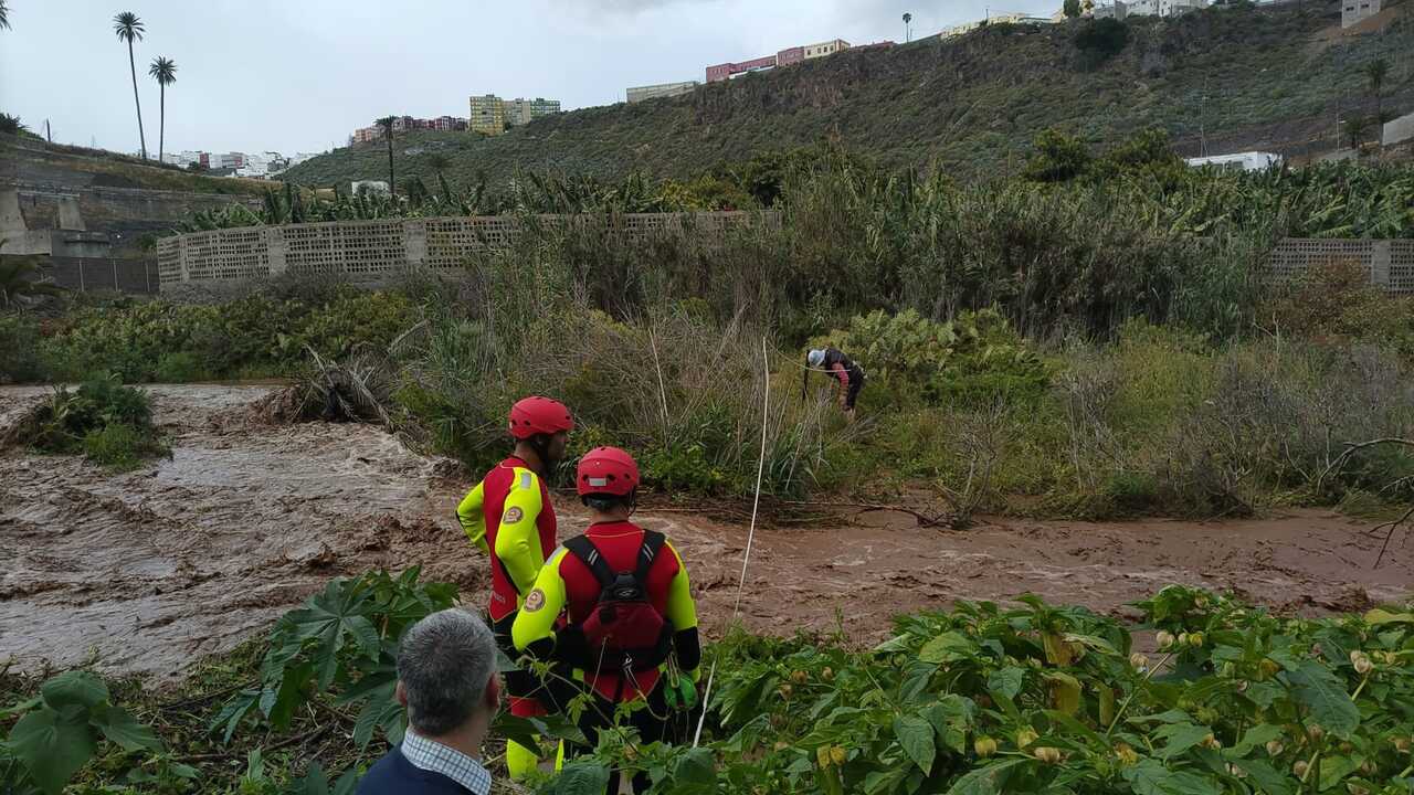 Efectivos de emergencia en un rescate en el barranco de Guiniguada tras las lluvias de la borrasca 'Therese'.