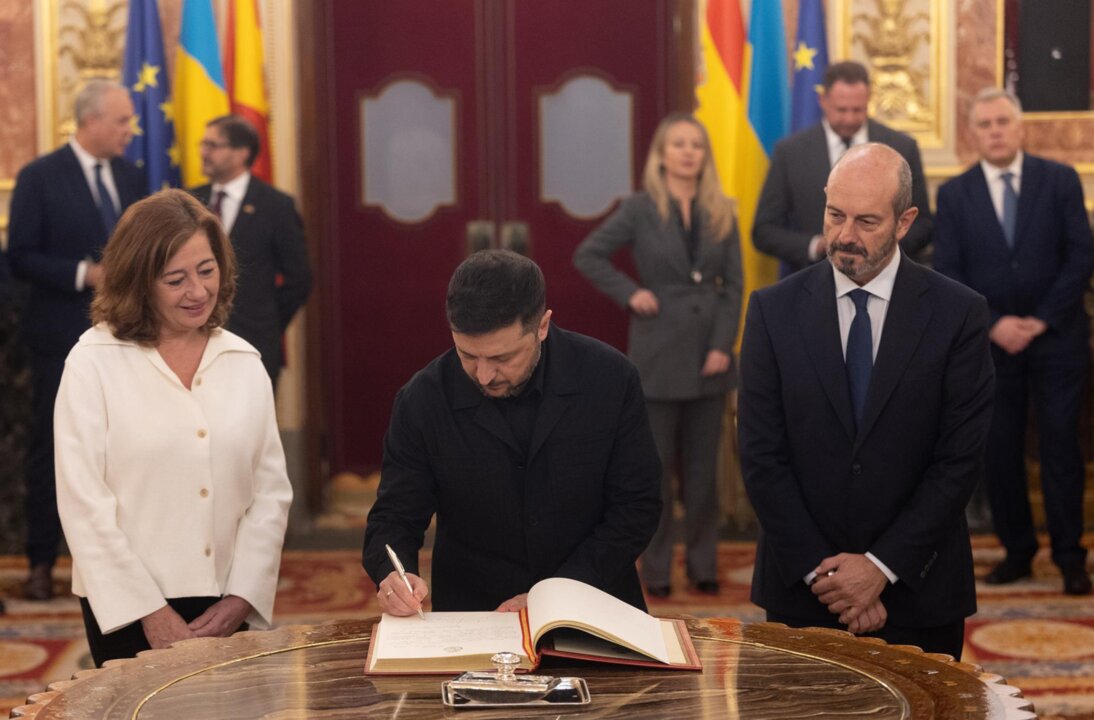 A renglón seguido, los tres se han dirigido al Salón de Pasos Perdidos, donde Zelenski ha aprovechado para firmar en libro de visitas y volver a posar para una foto de familia, en este caso con más integrantes, puesto junto a ellos se encontraba los presidentes de las comisiones de Exteriores, Defensa y Cooperación Internacional del Congreso y del Senado, así como el presidente de la Comisión Mixta (Congreso-Senado) de la UE.