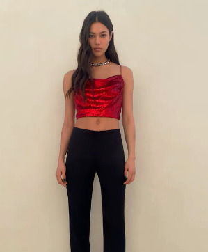 1. Apuesta por el rojo: Zara nos ofrece la versión vestido y la versión top, ambos en lentejuela roja.