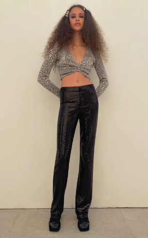 3. La apuesta segura: el color negro es ese color con el que sabes que no vas a fallar, es elegante, sienta genial a todas las pieles y es fácil de combinar. Hemos escogido nos propuestas de Zara en este color: un pantalón de lentejuelas que nos encanta y un vestido de terciopeolo.