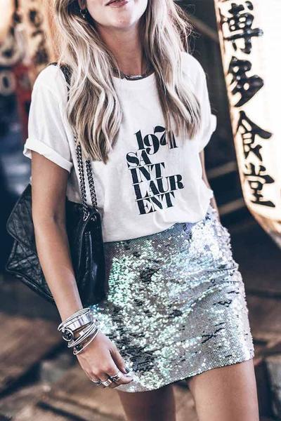¿La ventaja sobre el vestido? No te vas a cansar de "tanto brillo" y puedes combinarlo con diferentes partes de arriba que harán que el look sea completamente anterior al diferente.