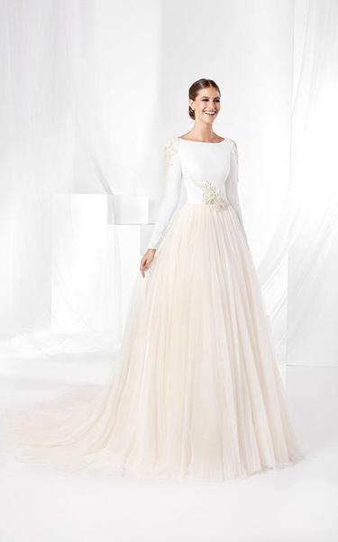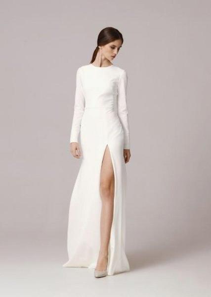 Ya lo dijimos, el vestido clásico va por lo alto. Elegancia, simpleza y belleza es lo que representa este año 2021. Muchos de los vestidos de novia presentados son simples, sencillos y minimalistas. La cintura está adornada con cinturones muy finos y los escotes son sutiles o profundamente sexys. Para las novias más atrevidas, está la opción de trajes chaqueta con pantalones palazzo. Los tejidos de novia más utilizados son el mikado brillante, crepé o tul muy ligero y organza. Para muchos diseñadores, el blanco puro está de vuelta en la pasarela.