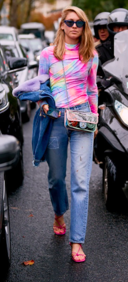La cazadora vaquera hasta ahora reina indiscutible de la temporada abre paso a las chaquetas de punto con bordados multicolor y crop tops de tirantes spaghetti que completan los estilismos que rinden homenaje a este regreso al pasado. Sin restricciones ni límites de ningún tipo, los mix de colores y de estampados están permitidos para este 2021. Los delitos de moda ya no existen. Está permitido teñir tus prendas, llevar hombreras o incluso deportivas con plataforma.