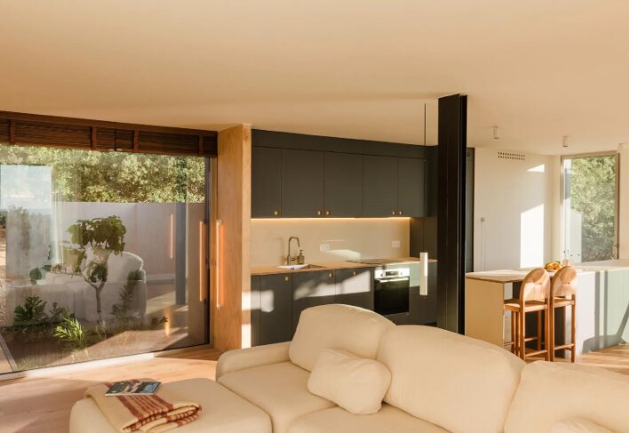 Sierra + de la Higuera sugieren la unión de elementos opuestos, como acero inoxidable con madera o piedra caliza con tapial, para conseguir ambientes modernos, con profundidad y carácter único. También se rechaza el uso de imitaciones y se apuesta por materiales con identidad definida, texturas y colores decididos.