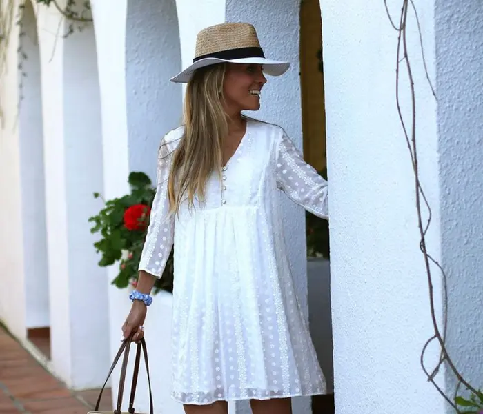 Un vestido limpio, sencillo y perfecto para combinarlo de la forma que más nos guste. Este estilo de vestido no da un amplio abanico de posibilidades para hacer un diseño personal del outfit como más nos guste, sin tener que interpretar o combinar colores, zapatos, o accesorios. Además, su combinación con bordados o brocados en algunas zonas del vestido, da fuerza a la prenda y la hace más personal.