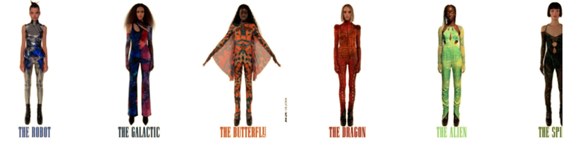 La colección cápsula consta principalmente de seis disfraces en formato mono que representan a diferentes personajes: "el robot", "galáctico", "la mariposa", "el alien", "la araña" y "el dragón". Cada uno de los disfraces tiene el precio de 49,95 euros y cuidan hasta el mínimo detalle.