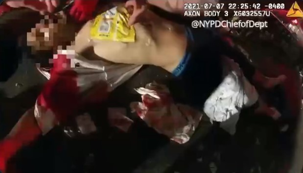 Un hombre se desangra en las calles de Nueva York a causa de un apuñalamiento. La policía reacciona con un método improvisado, pero que salvó la vida del joven. Las imágenes son impactantes.