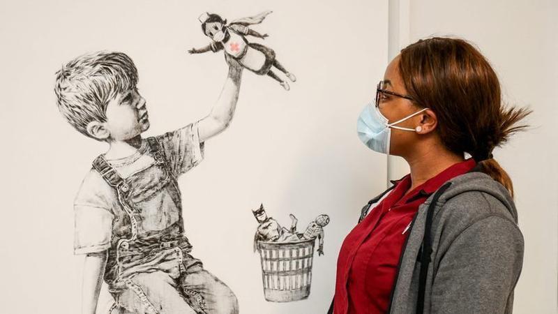 La obra de un niño jugando con la muñeca de una enfermera como si de una superheroína se tratase ha recaudado un total de 16,7 millones de euros en una subasta, todo el dinero irá directamente al sistema sanitario de Reino Unido. El dibujo ha sido realizado por el artista anónimo Bansky.