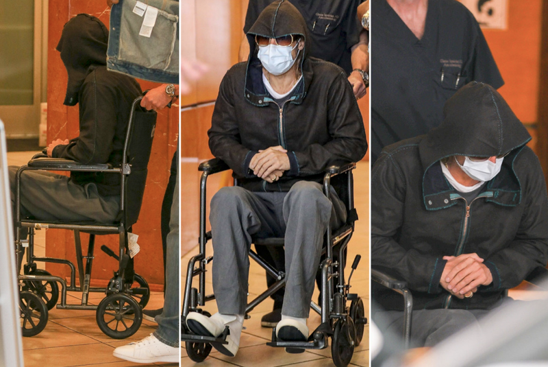 El reconocido actor estadounidense Brad Pitt salió el miércoles de un hospital de Beverly Hills (Los Ángeles) en silla de ruedas y escondido bajo una chaqueta con capucha, unas gafas de sol y la mascarilla.