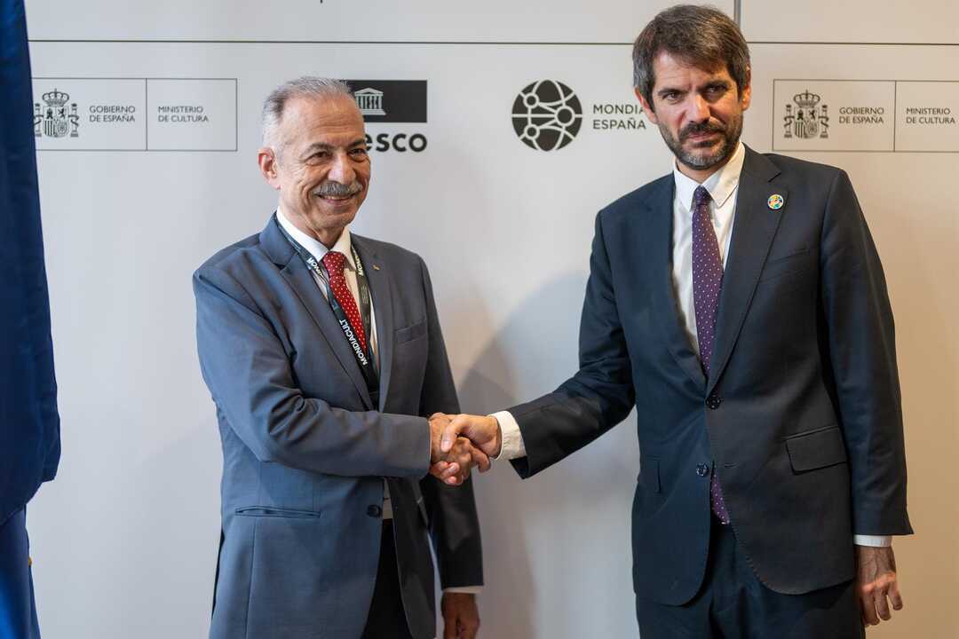 El ministro de Cultura, Ernest Urtasun, y el embajador de Palestina en España, Husni Abdel Wahed, han anunciado un acuerdo por el que el Ministerio de Cultura aportará 200.000 euros al fondo de la Unesco para la reconstrucción de Gaza, tras una reunión celebrada este martes en el marco del Mondiacult de Barcelona.