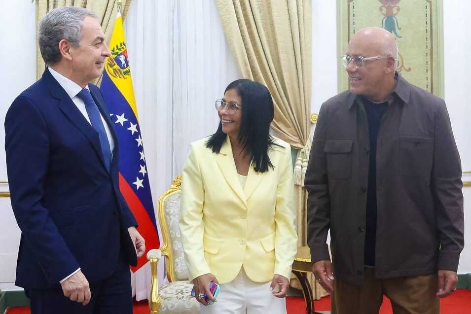 Rodríguez recibió a Zapatero el viernes en la sede presidencial de Caracas. En la cita también participó el presidente de la Asamblea Nacional, Jorge Rodríguez, hermano de la dirigente, según las imágenes difundidas por la Presidencia venezolana y por la televisión pública VTV.