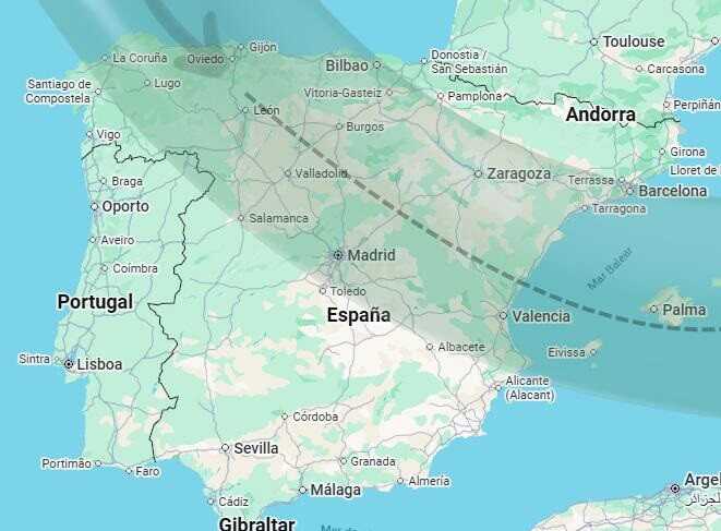 La sombra del eclipse cruzará la península de oeste a este durante el atardecer, situando a provincias como León, Burgos, Valladolid, Asturias y La Rioja en el centro de atención de los 'cazadores de eclipses'.