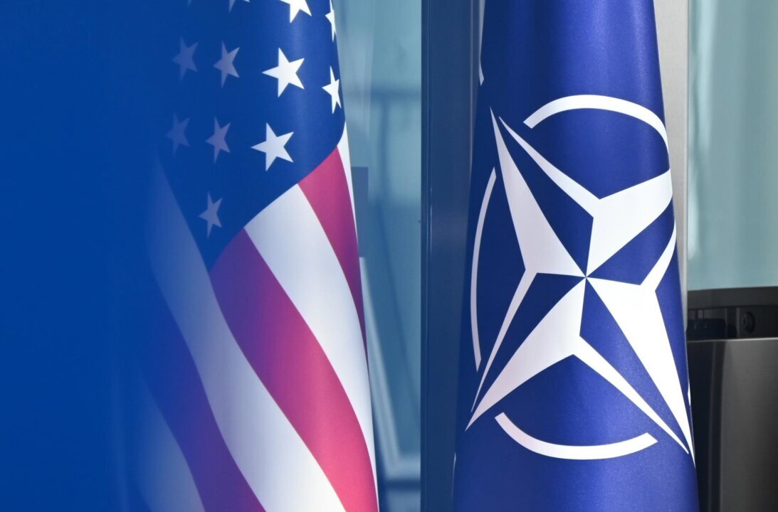 Archivo - Una bandera de Estados Unidos y una bandera de la OTAN - Anna Ross/dpa - Archivo