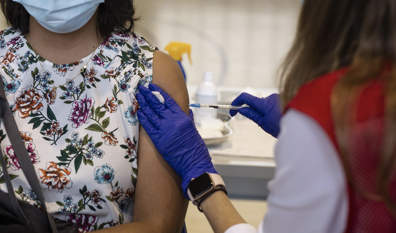 Una voluntaria de Cruz Roja administra una dosis de la vacuna contra el Covid-19 a un estudiante universitario en el campus de Ciudad Universitaria, a 14 de septiembre de 2021, en Madrid, (España). Hoy arranca en la Comunidad de Madrid la vacunación frent - Alejandro Martínez Vélez - Europa Press
