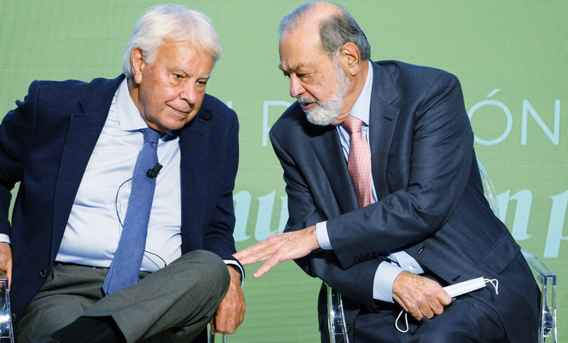 El expresidente del Gobierno Felipe González (i); y el empresario mexicano Carlos Slim, conversan en la segunda jornada de la 26ª edición del Círculo de Montevideo, en Cidade da Cultura, a 30 de noviembre de 2021, en Santiago de Compostela, Galicia, (Espa - Álvaro Ballesteros - Europa Press