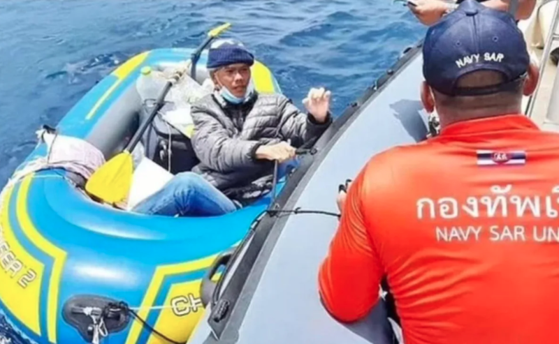 El hombre de 37 años fue rescatado por la Marina tailandesa mientras se encontraba dentro de una lancha neumática en la que llevaba bidones de agua y bolsitas de comida deshidratada.