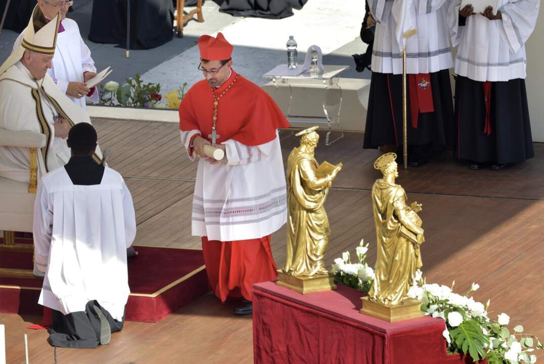 Archivo - El Papa Francisco (i) nombra cardenal al arzobispo de Madrid, Jose Cobo (d) en la basílica vaticana de San Pedro, a 30 de septiembre de 2023, en Roma, (Italia). - Stefano Spaziani - Europa Press - Archivo
